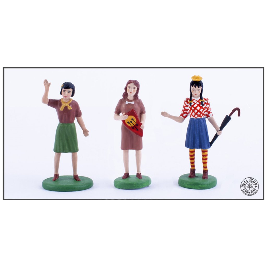 Soubor tří malovaných cínových figurek - ikonické dívky z příběhů Rychlých šípů. Vlasta, Haha Bimbi a Podkova